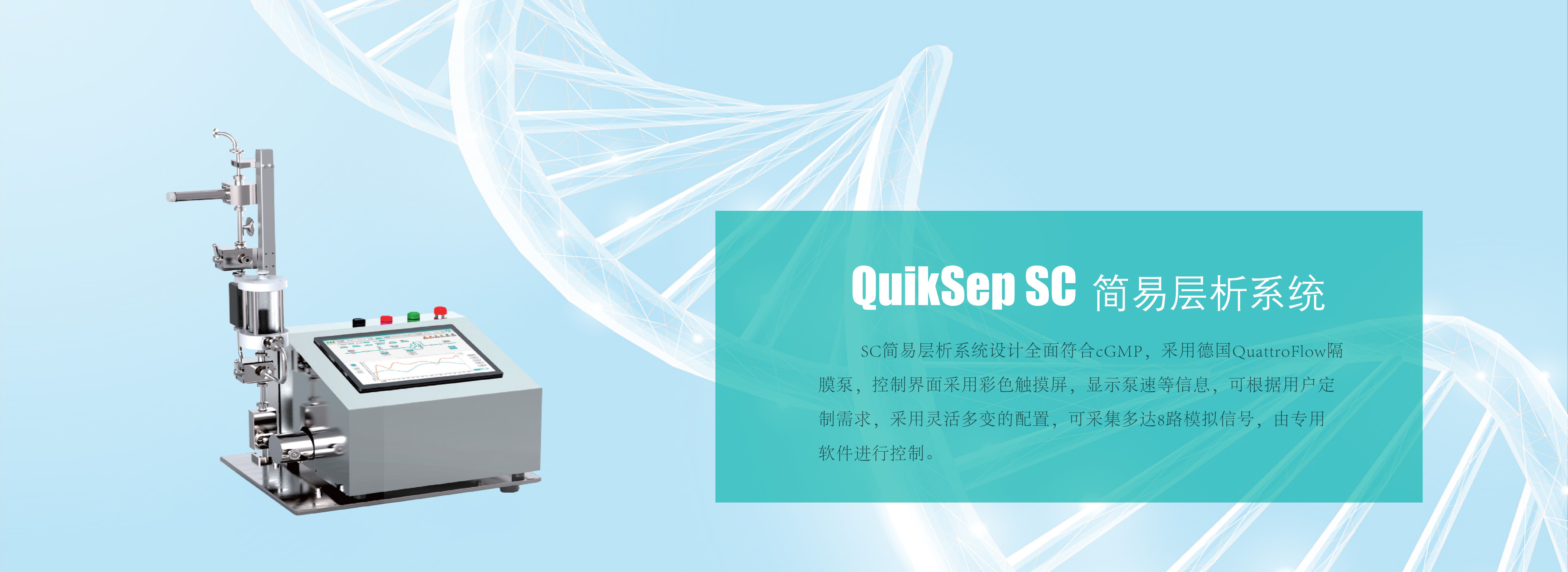慧德易科技QuikSep 生物智能泵是通過軟件控制隔膜泵的轉速,配合衛生級壓力流通池及管路,通過實時壓力檢測和電機配合,實現恒流和恒壓,防止泵超壓,實現定時定量,適用于生物制藥在層析、過濾、料液轉移等各種輸送液體的應用。