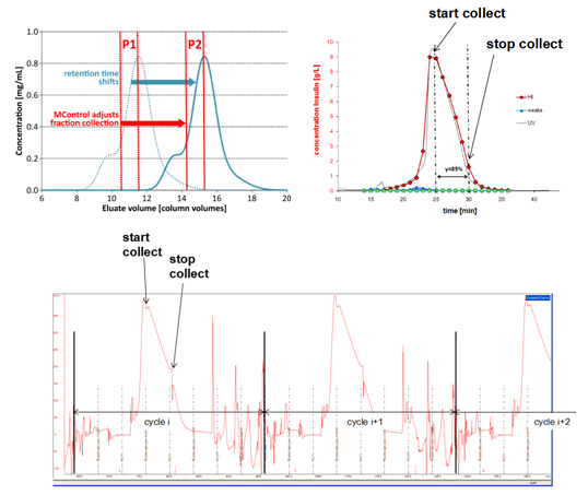 ? 通過MCSGP的子模塊M-Control,可有效克服由于溫度、柱效等因素造成的出峰時間遷移,實現智能收集,保證各cycle的工藝可控性和可重復性。
