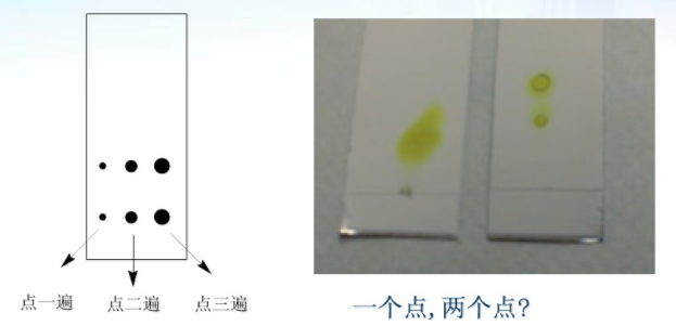 ????? 2. 點(diǎn)的斑點(diǎn)較小,展開(kāi)的TLC分離度好。