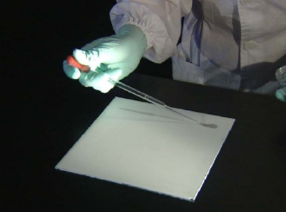一看:首先在日光下觀察,劃出有色物質(zhì)的斑點(diǎn)位置